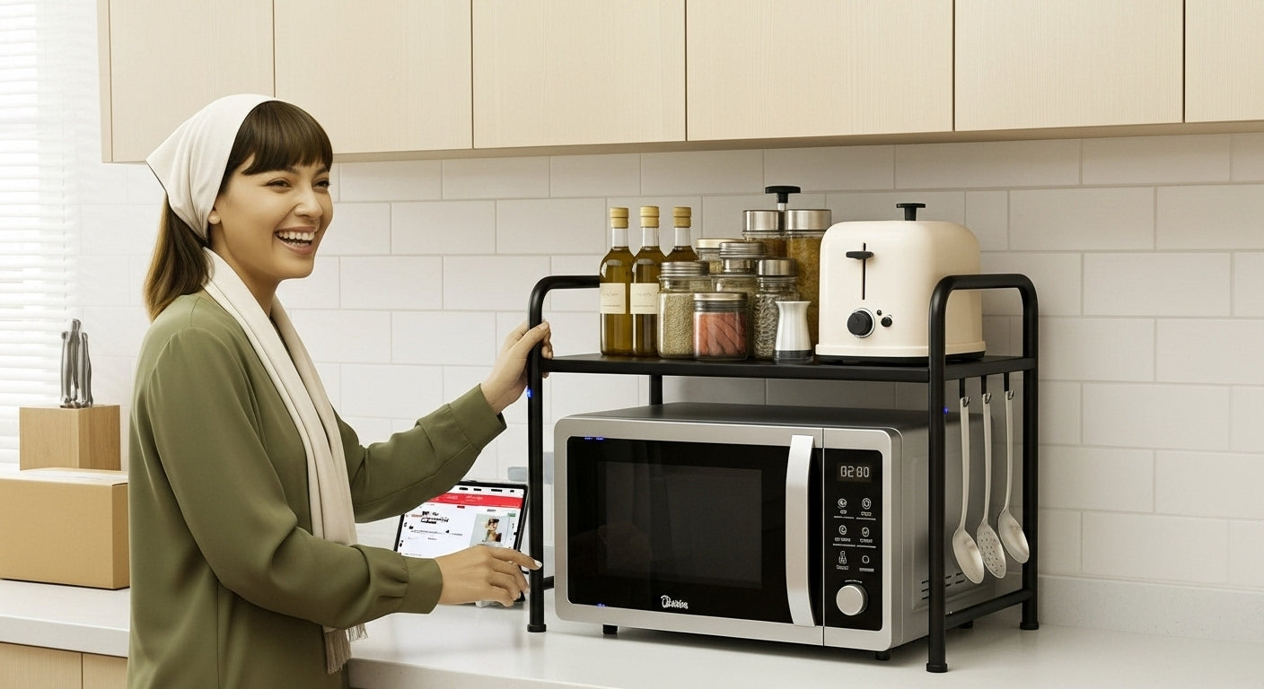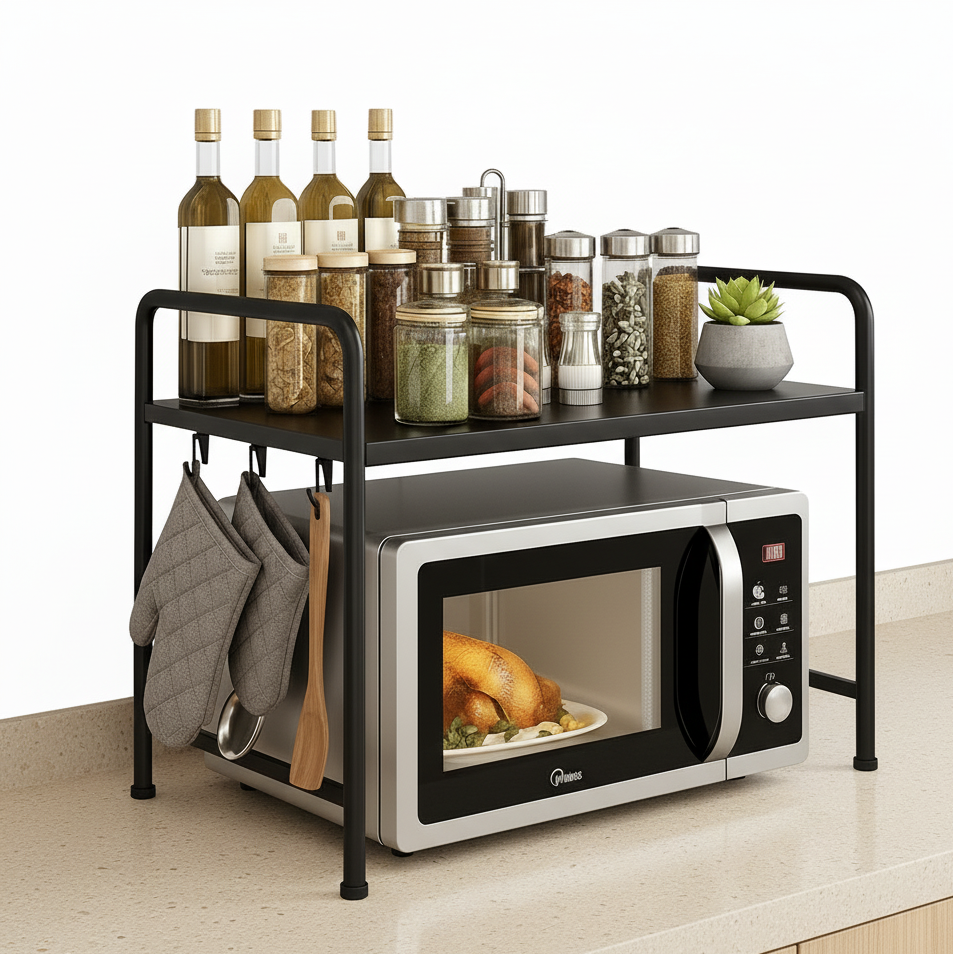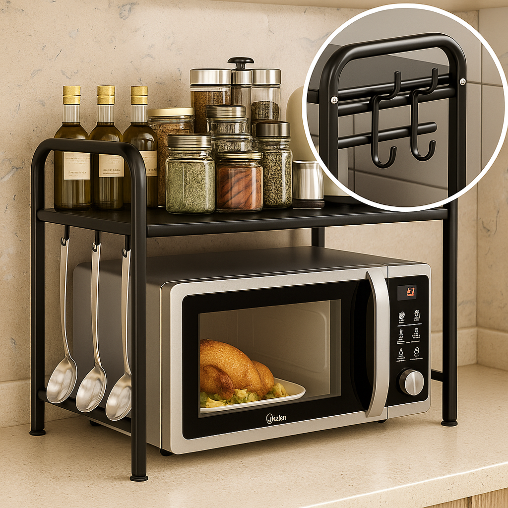 لا تدعي الفوضى في المطبخ – اطلبي حامل الميكرووند العصري الآن ونظمي كوزينتك!